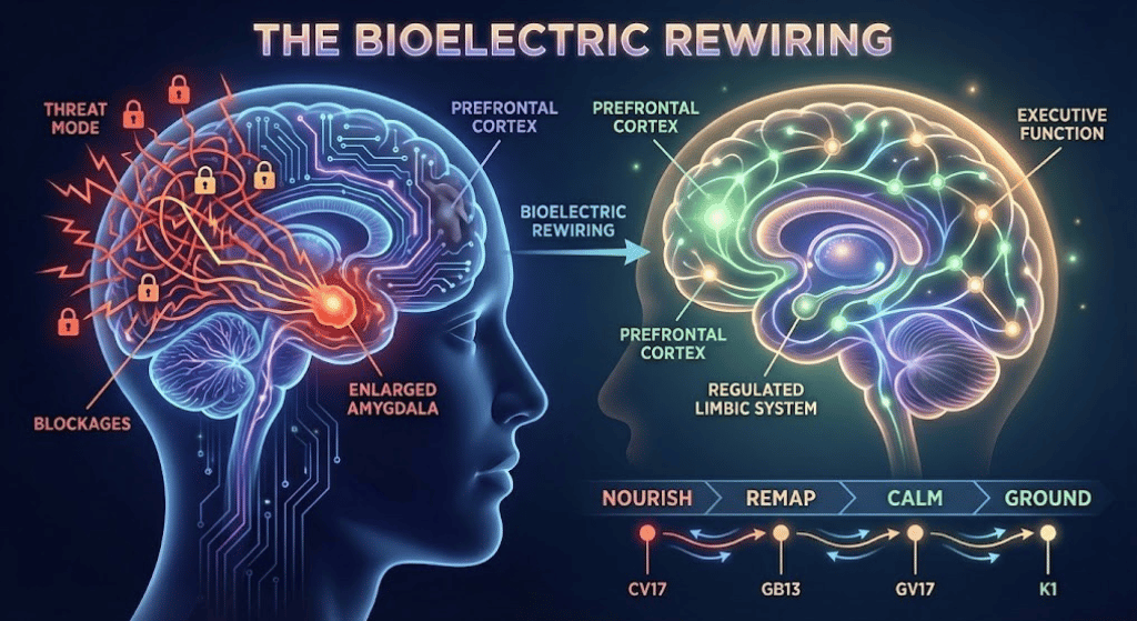Direct, non-invasive mind-formed energy intervention releases those blockages without emotional processing or revisiting the past. Tong Ren protocols use magnetic stimulation on the acupuncture model to open resistance points and restore Chi and blood circulation. Warmth or tingling often signals that electrical flow has resumed.